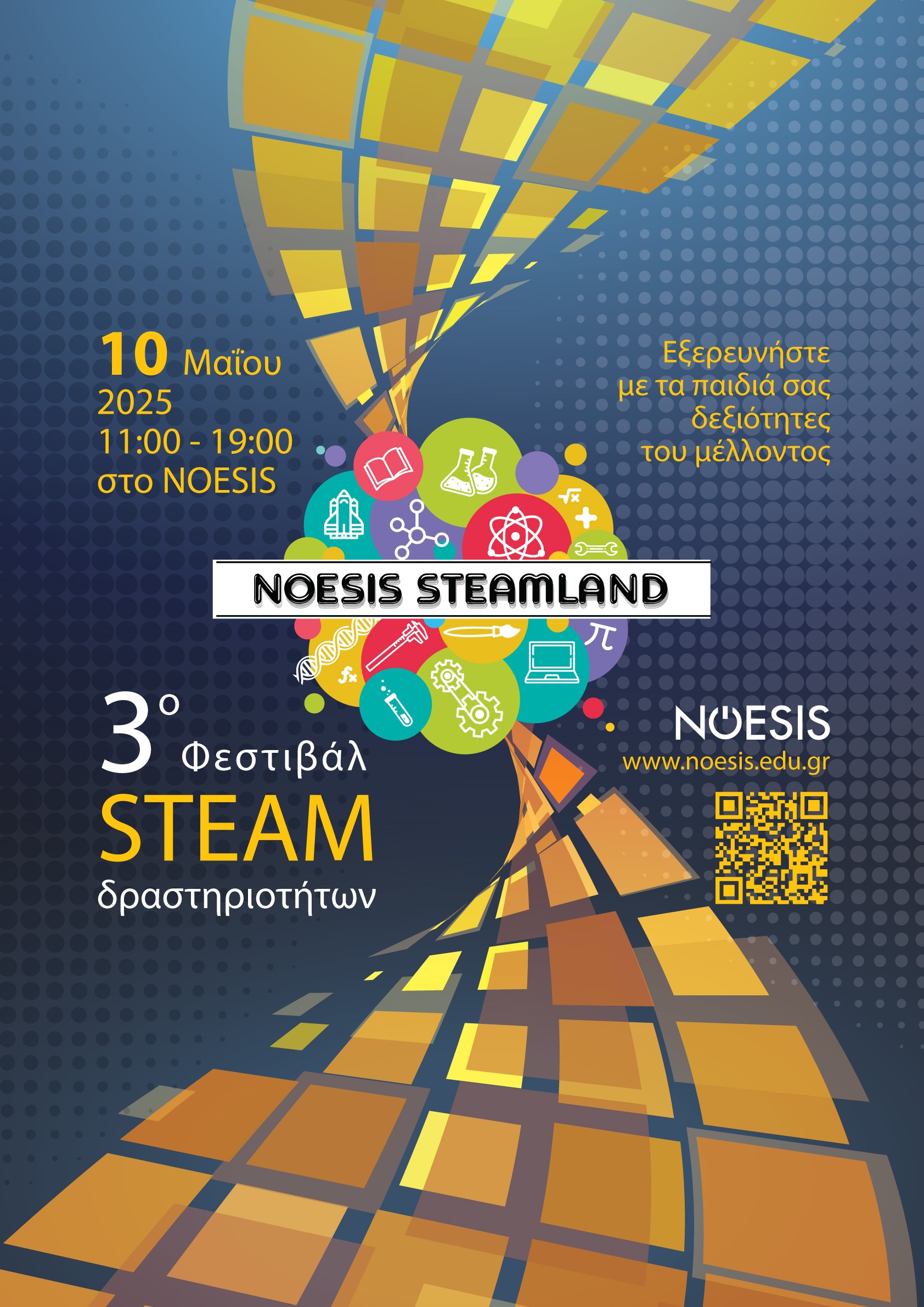 Οι φορείς STEAM εκπαίδευσης της Θεσσαλονίκης, δίνουν για ακόμη μια χρονιά ραντεβού με παιδιά και γονείς στο NOESIS STEAMLAND 25, το Σάββατο 10 Μαΐου 2025, στις εγκαταστάσεις του φορέα.